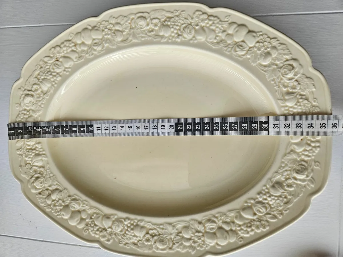 1950's Crown Ducal platter. Embossed flower & fruit design. Collectiom from Beaumont, Dublin.