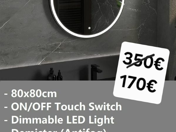 LED Bathroom Mirror Antifog Defogger 80cm Black