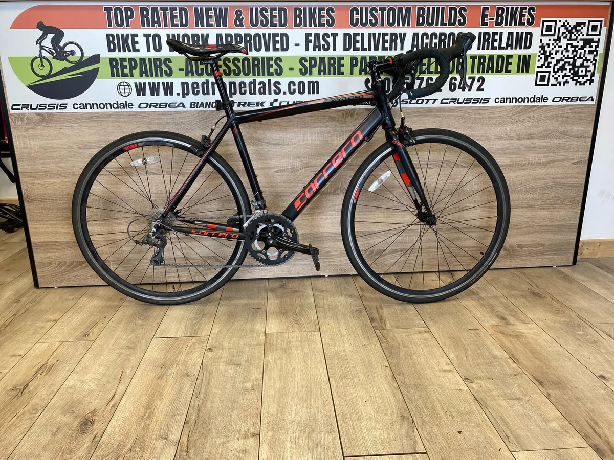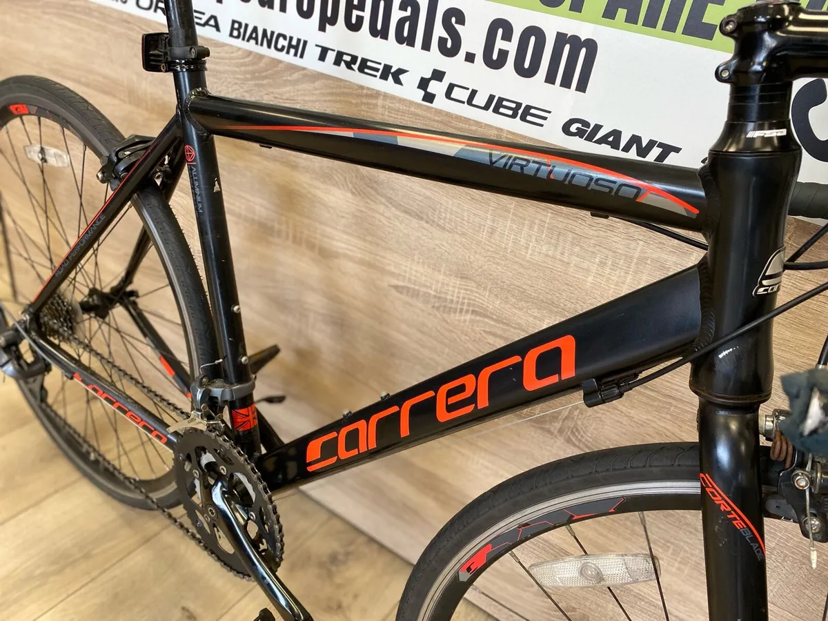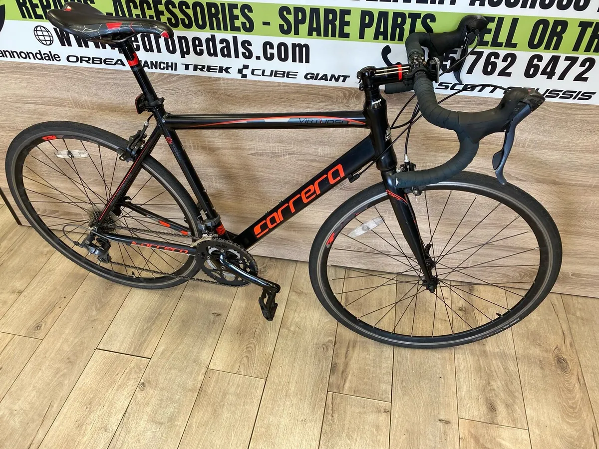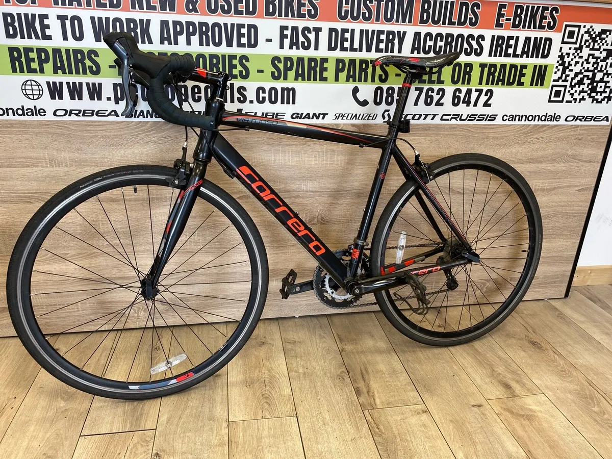 Carrera virtuoso (like new) Very light bike Full Claris group set Drivetrain 2x8 Wheel: 700c Aluminum Size:M Everything works perfect Delivery is possible If you want to see more bikes please check my other ads. Pedro Pedals, Who are we? Company established in Dublin in 2022, trading from Dublin area. We supply bikes and mountain bikes, road bikes, serious and leisurely alike. All range of bikes from kids to seniors. Our aim is to provide quality bikes to our customers. We have brand-name new bikes and equipment in stock. If you are looking for second hand or vintage pair of wheels please contact me on 085 7626 472 or facebook Pedro Pedals. We are registered company with Business name Pedro Pedals with registration number 708017.