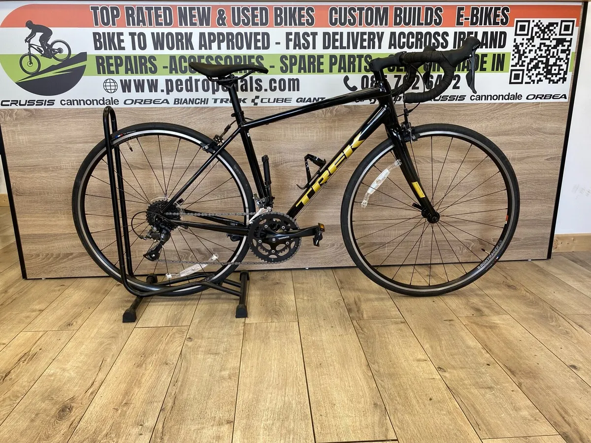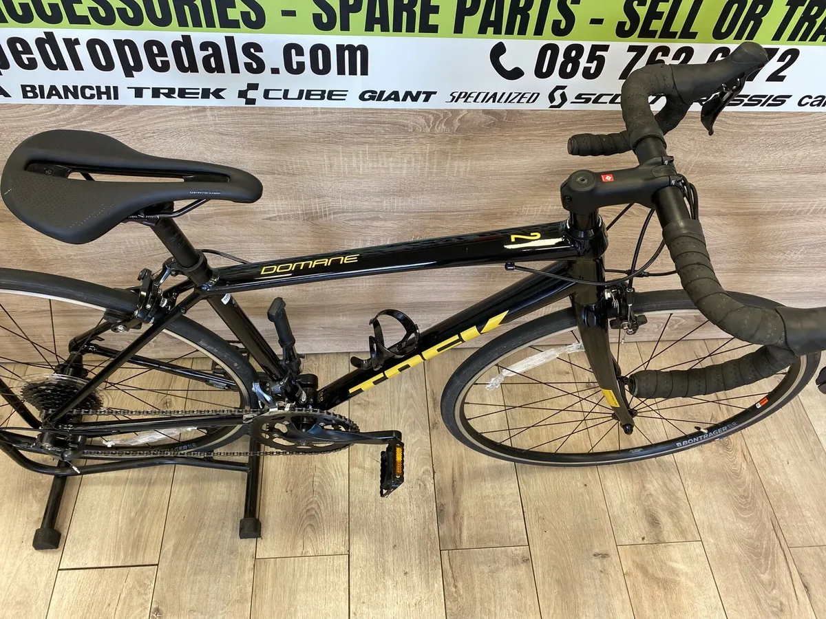 Trek domane 2 (like new) Very light bike carbon fork Full Claris group set Drivetrain 2x8 Wheel: 700c Aluminum Size:M Everything works perfect Delivery is possible If you want to see more bikes please check my other ads. Pedro Pedals, Who are we? Company established in Dublin in 2022, trading from Dublin area. We supply bikes and mountain bikes, road bikes, serious and leisurely alike. All range of bikes from kids to seniors. Our aim is to provide quality bikes to our customers. We have brand-name new bikes and equipment in stock. If you are looking for second hand or vintage pair of wheels please contact me on 085 7626 472 or facebook Pedro Pedals. We are registered company with Business name Pedro Pedals with registration number 708017.