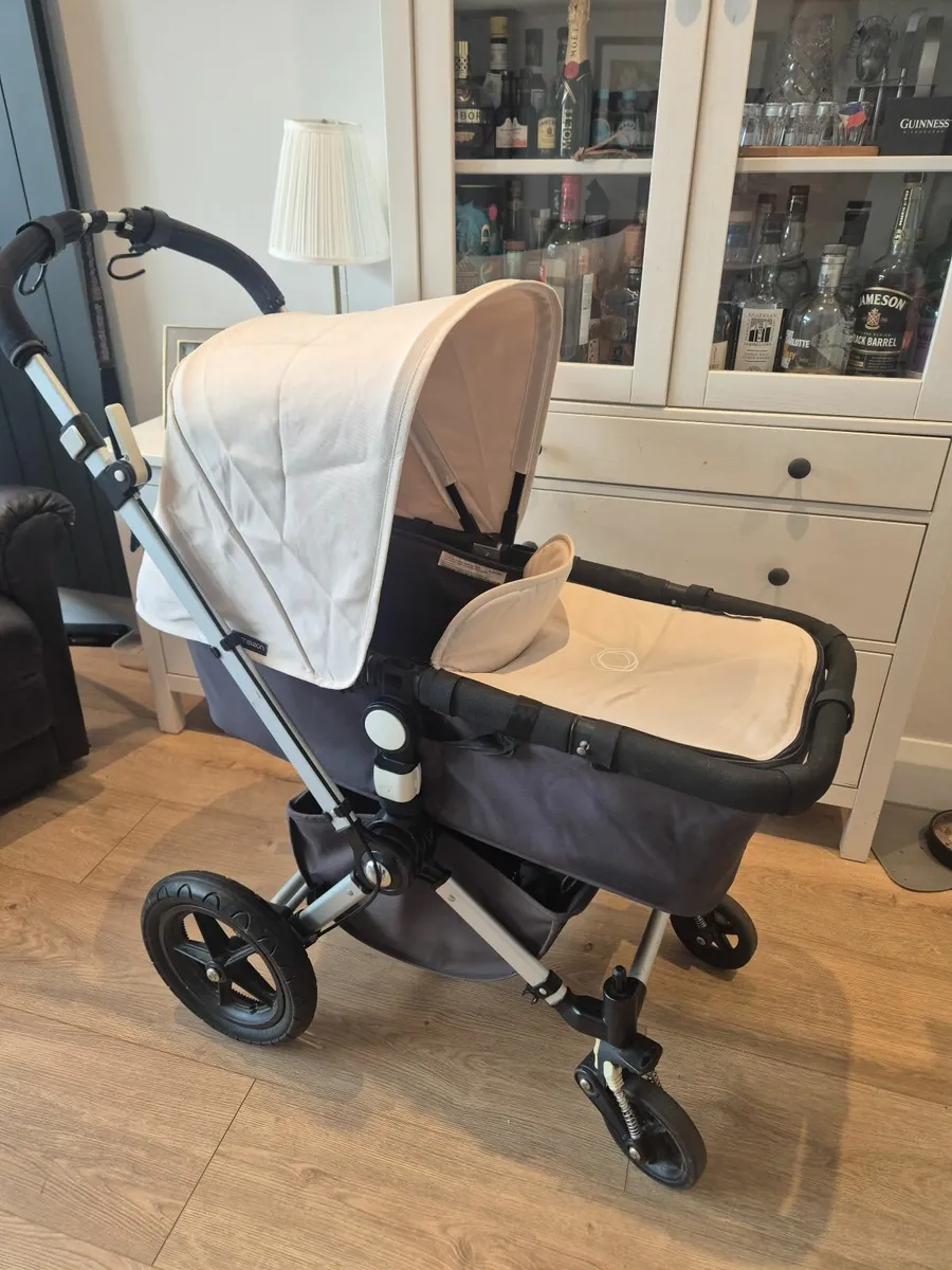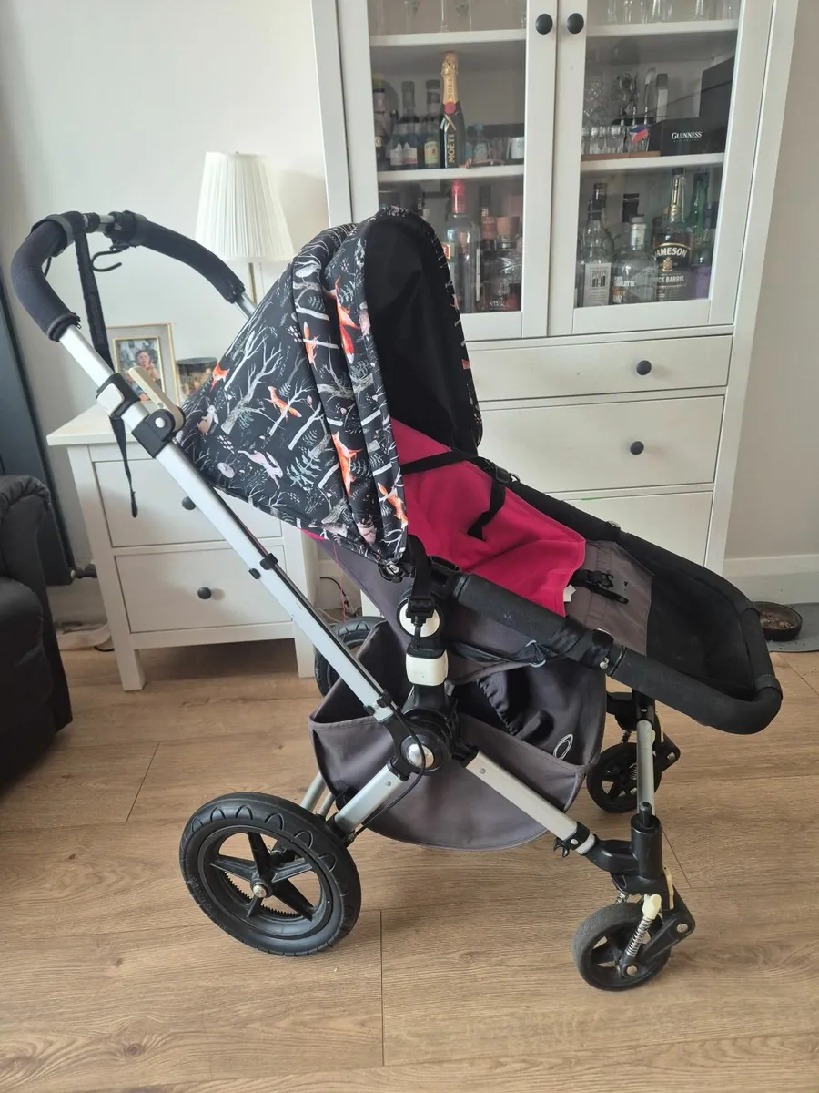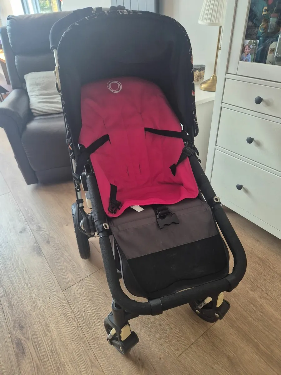 Cross posted Bugaboo Cameleon With bassinet 3 different shades (pink, cream and fox) 2 footmuff (pink and black) With raincover and insect cover With hooks for bag With buggy board 1 broken clip but replaced with stainless hook