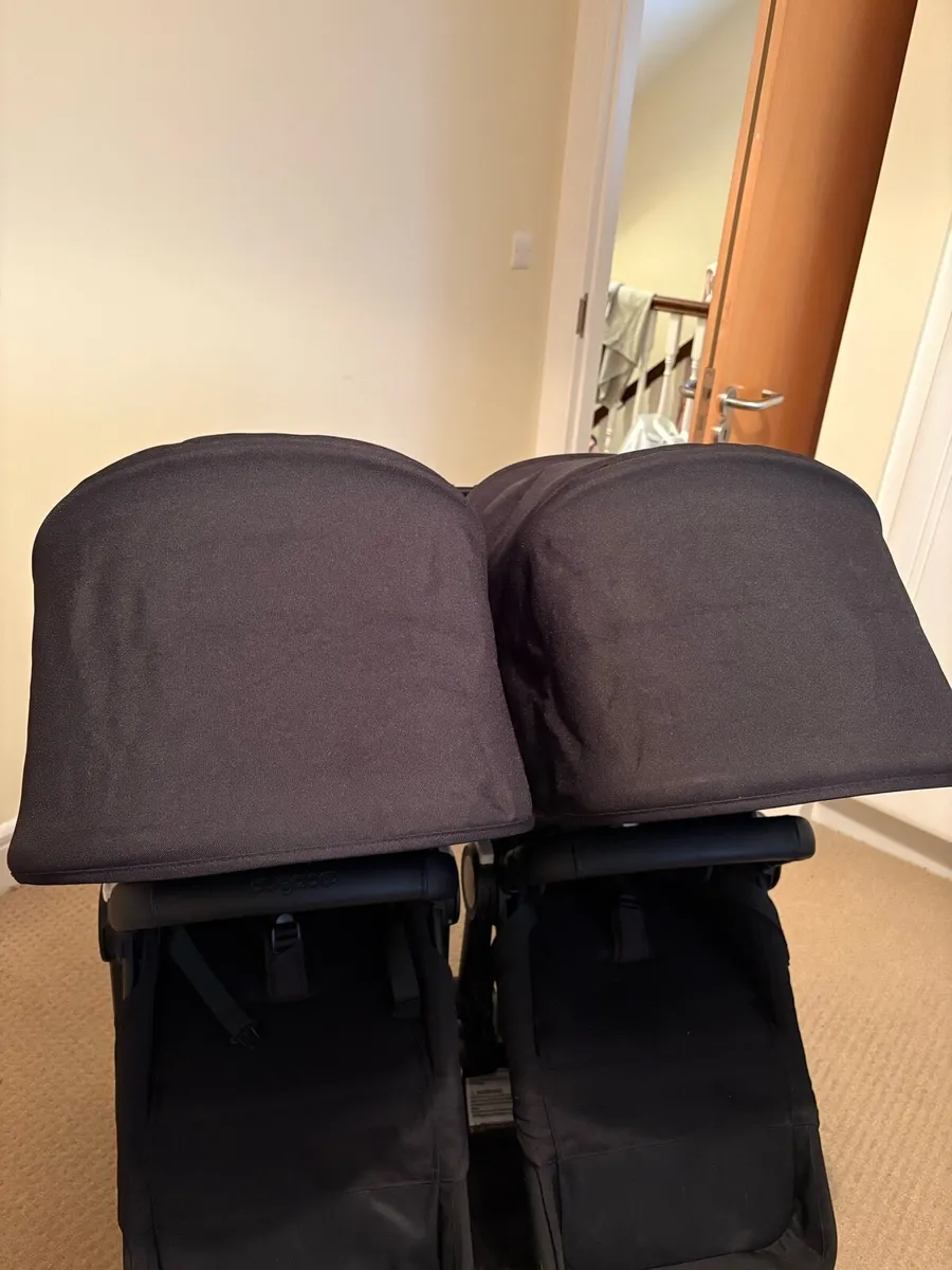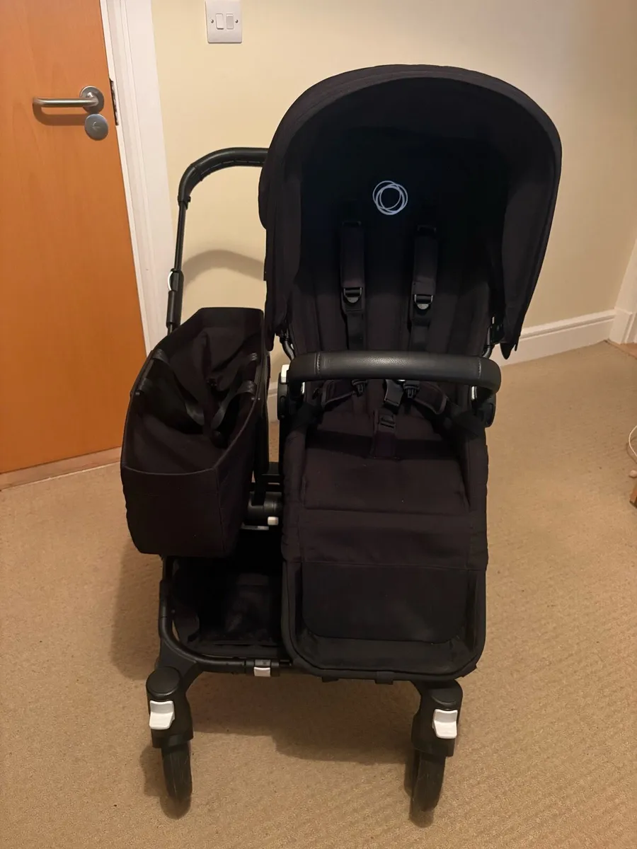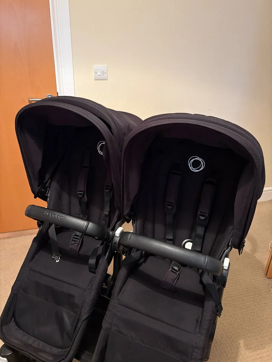 Bugaboo Donkey 3 Duo – 2 Years Old, Mint condition. One bassinet, two seats, matte black special edition chassis and real leather handles and trims. Also have a Maxi Cosi car seat with isofix base and adapters for the buggy, footmuff and travel case to sell separately if wanted as full bundle! Selling our Bugaboo Donkey 3 Duo, a versatile side-by-side double stroller perfect for a baby and toddler. It’s 2 years old, in mint condition, and has been recently professionally deep cleaned and steamed.  Key Features: • Converts from single to double in just three clicks • Fits through standard doorways (74 cm wide) • Puncture-proof foam wheels for smooth rides on any terrain • Spacious underseat basket (22 lbs capacity) • Suitable from birth up to 4 years (48.5 lbs per seat) • Compact fold for easy storage
