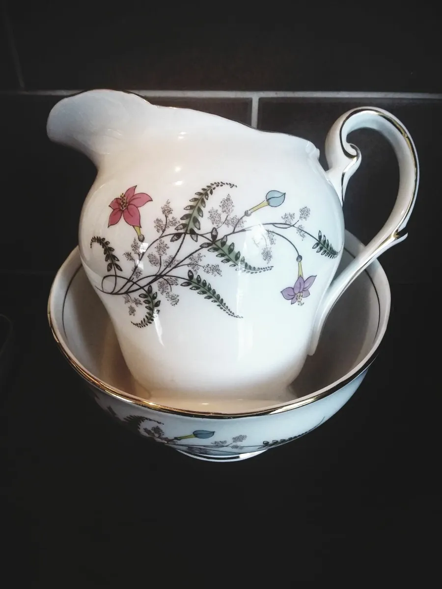 Tea pot 4 cups 4 saucers 4 side plates Milk jug Sugar bowl Sandwich plate ALL 16 PIECES FOR 30 euro