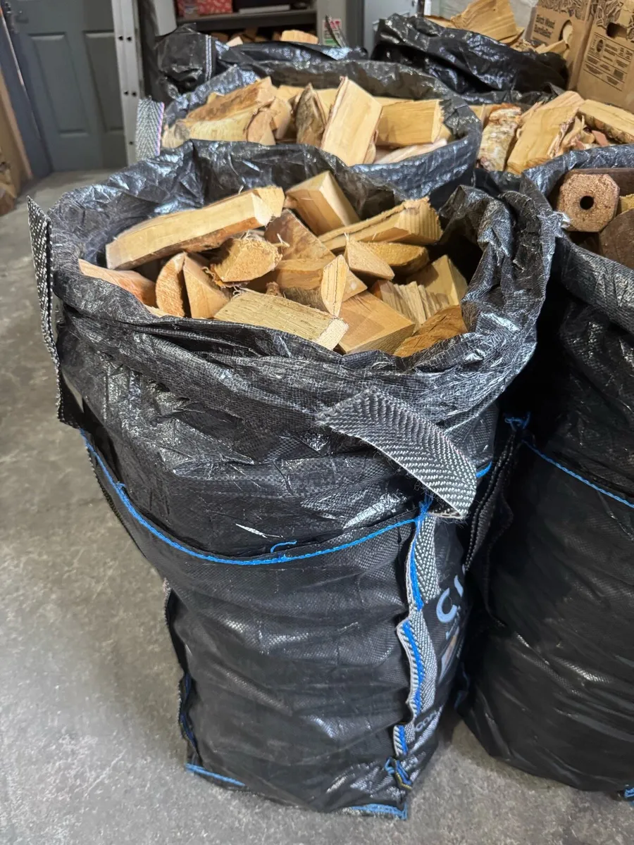 “This is a mixed kindling-size kiln-dried firewood. It’s ideal to use as kindling—please note it’s not the larger log size. The price is €70, non-negotiable. Collection is in Dublin 15 at the Northwest Business Park. For more details, feel free to contact me. The bag is approximately 90 kilograms or about 250 liters in volume, and it’s a mix of birch and oak.”