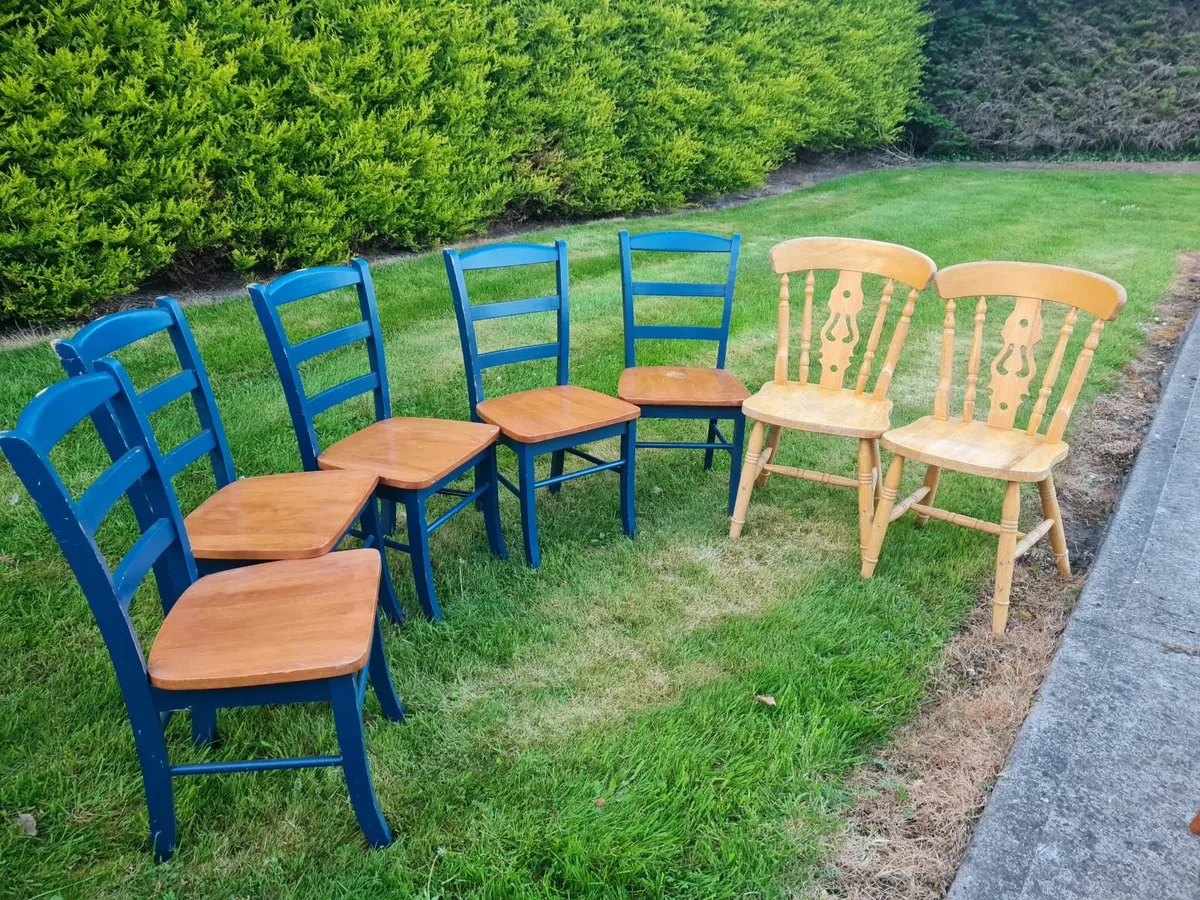 6 Kitchen chairs (5 in picture) 2 other chairs extra €10, vg condition