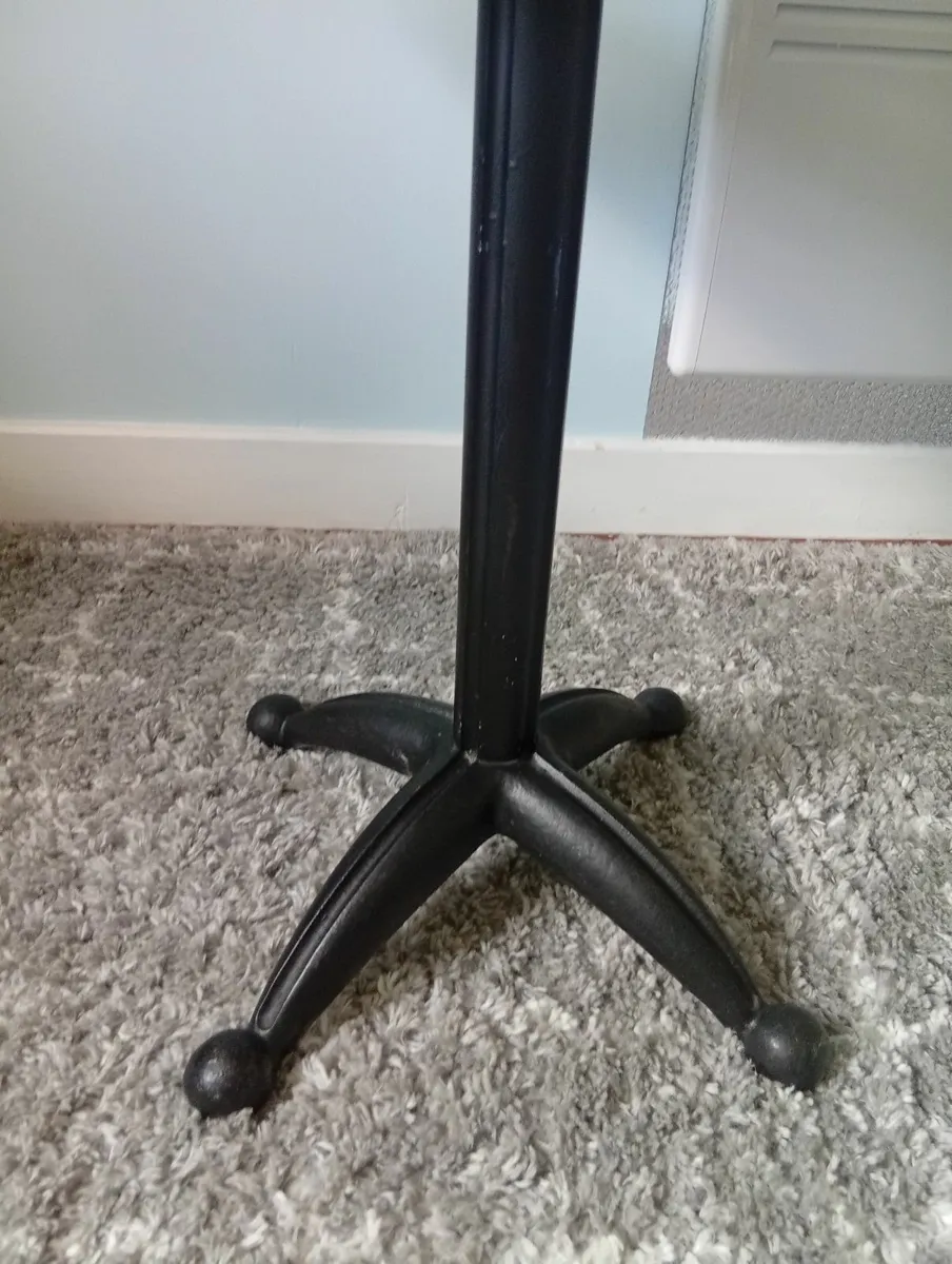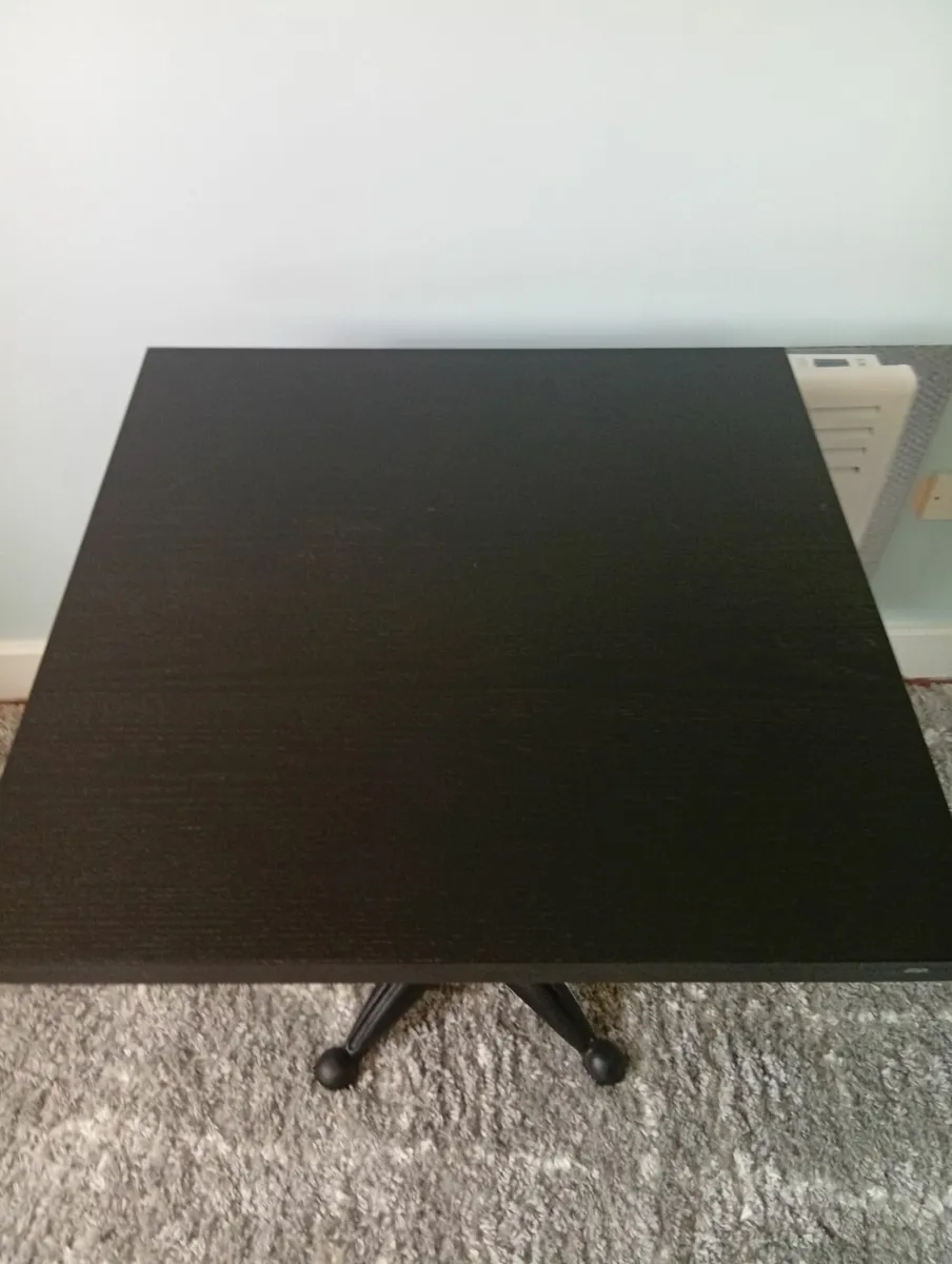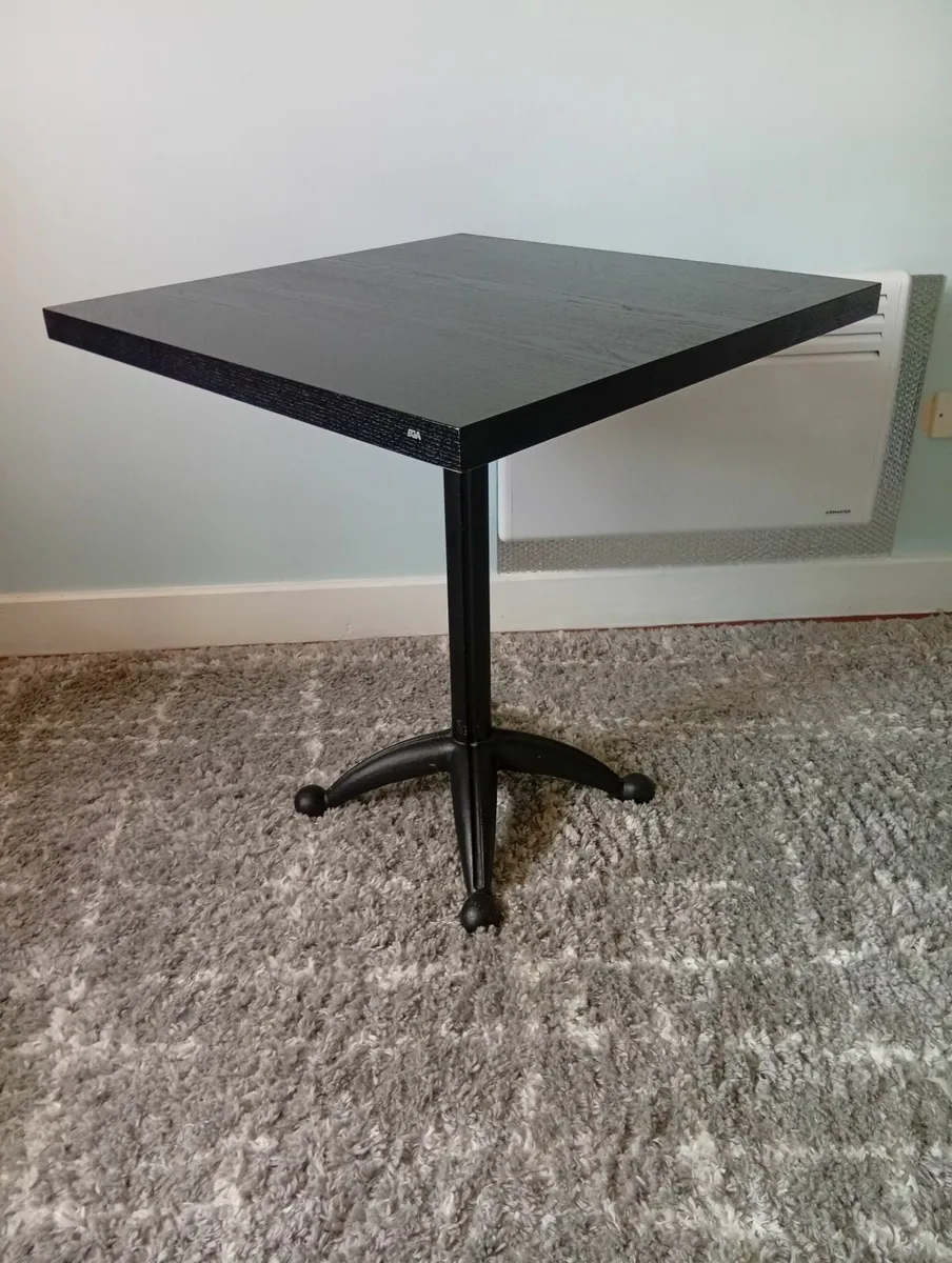 Excellent condition.Universal Quality Sturdy Kitchen Office Bistro Table etc. Black colour.Cast Iron Sturdy Leg with black square lid top. Size H76 W70 D70cm Suitable for renting accommodation etc.Location in Balbriggan area delivery locally