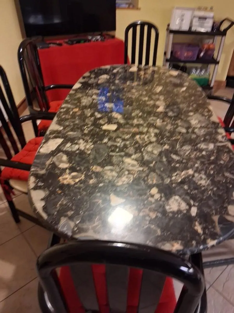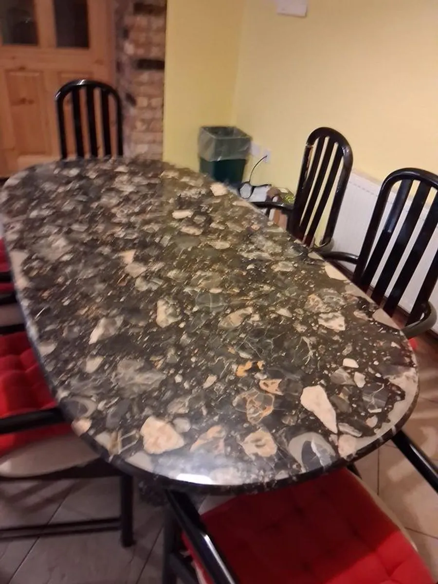 Italian Marble table with six chairs to match. 5‘ x 2.5‘ good condition. COLLECTION ONLY from Bally Hay Cork