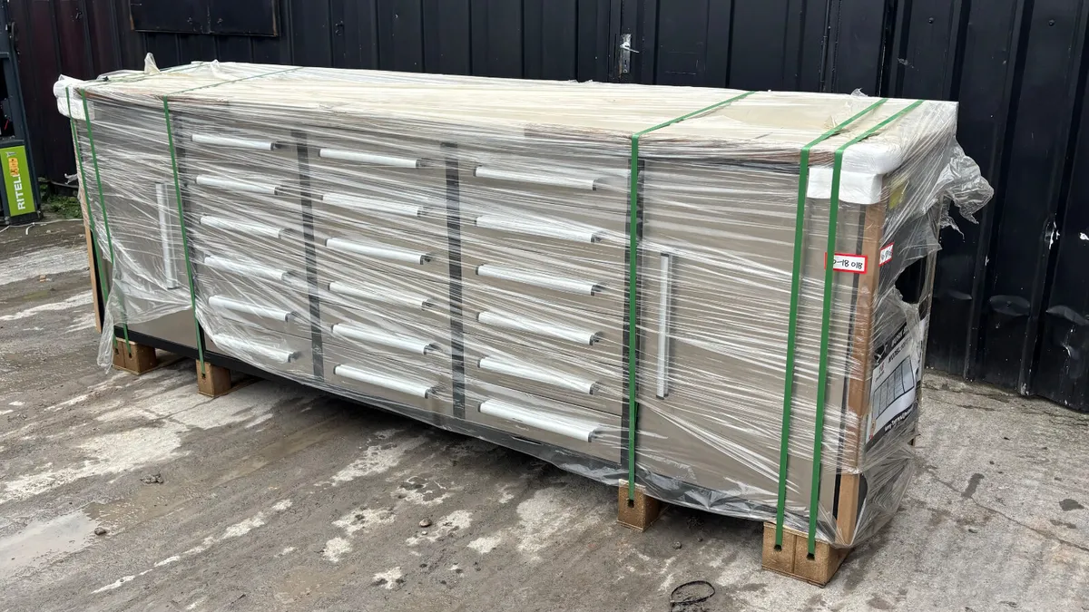 10’ Work Bench ,18 Drawers , 2 Cabinets