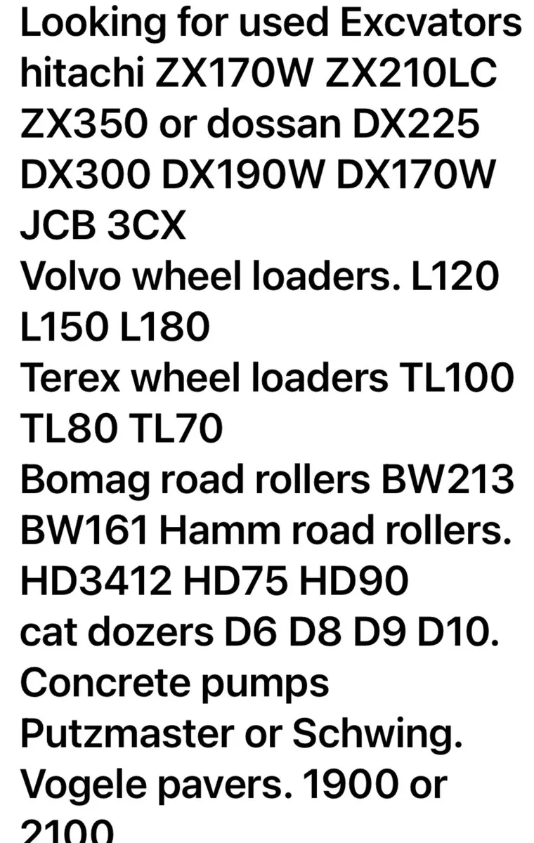 Plant and machinery exports doosan caterpillar hitachi komatsu volvo