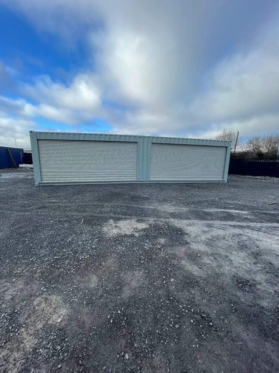 1x40ft hi cube container fitted with 2x18ft ft roller doors Painted grey