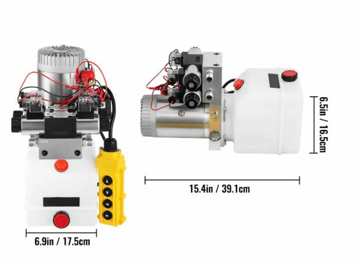 ✴️❇️ Delivery: 2-4 working days ✴️❇️ Condition: 100% New in Box About this item Product Details: Our hydraulic pump is designed with a 12V DC motor (Power: 1.6-3.0kw) and a 4.5-quart reservoir. The max relief pressure setting is 3200 PSI; the flow rate is 2 GPM, and it is a double-acting pump for both power up and power down. Easy to Use: This 12V hydraulic power unit has been fully assembled in advance. The wiring is simple and comes with operating instructions. Two additional SAE#6 connectors and one 4-button detachable pendant ( 15 ft ) are included in the package. Reliable Quality: The dump trailer pump is made of sturdy plastic; thus, the oil tank is not easy to crack or be damaged. As a power unit, this is a perfect replacement pump for remote hydraulic systems. Rapid Start: With its powerful motor, this hydraulic electric pump is quick to start and quick to output oil; it can provide strong power for hydraulic systems like dump trailers, dump beds and is able to complete lifting in a short time. Wide Application: This power unit is widely used in stackers, small, and medium-sized lifting platforms. It is compatible with many dump trailers and movers and is a direct replacement for 12V DC remotely controlled hydraulic systems. Specifications Voltage: 12V DC Power: 1600w Reservoir Capacity: 4.5L 2.1cc/rev gear pump Plug: 4.5-liter or 8-liter reservoir c/w drain plug Motor: 12VDC electric motor c/w relay Mount: Horizontal mounting Max PSI: 3200 PIS Max Flow: 5 L/min Flow: 2 GPM Port size 3/8" BSP Delivery Rate at 160 bar: approx. 5 L / min (adjustable from 40-200 bar as standard) Features: Powerpack complete with suction strainer, return oil conveyer and filler breather Package Content 1 x 12V DC 4.5L Double Acting Double Solenoid Hydraulic Power Pack ( 4 button pendant with a detachable pre-wired as standard.)
