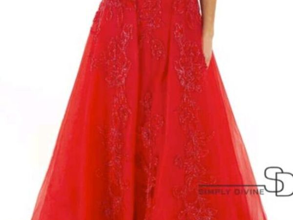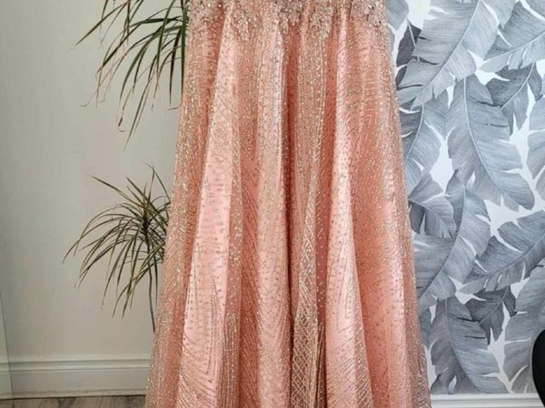 Coral Dress with feather & net details Size 14/16
